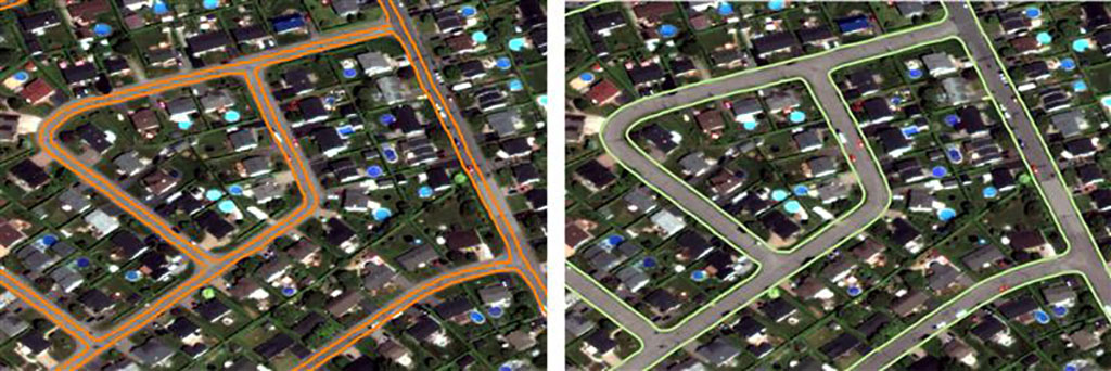 - Amélioration de la précision horizontale, en faisant correspondre les images sources au modèle d’élévation numérique de haute résolution (lorsqu’il est disponible).